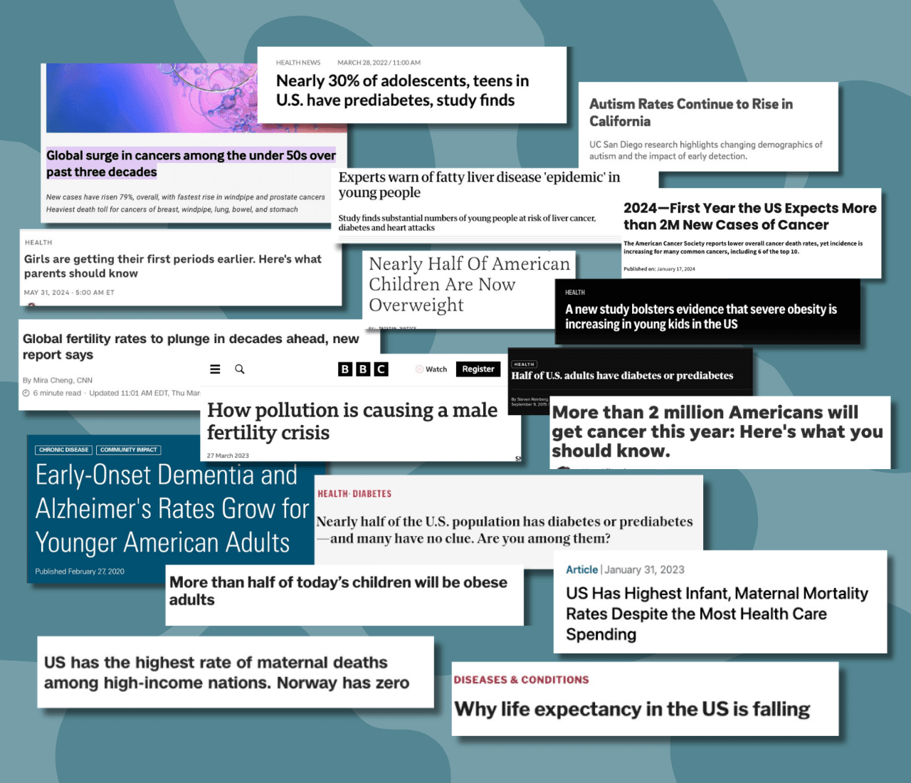 Just a few of the papers and headlines highlighting the current state of health in the US.